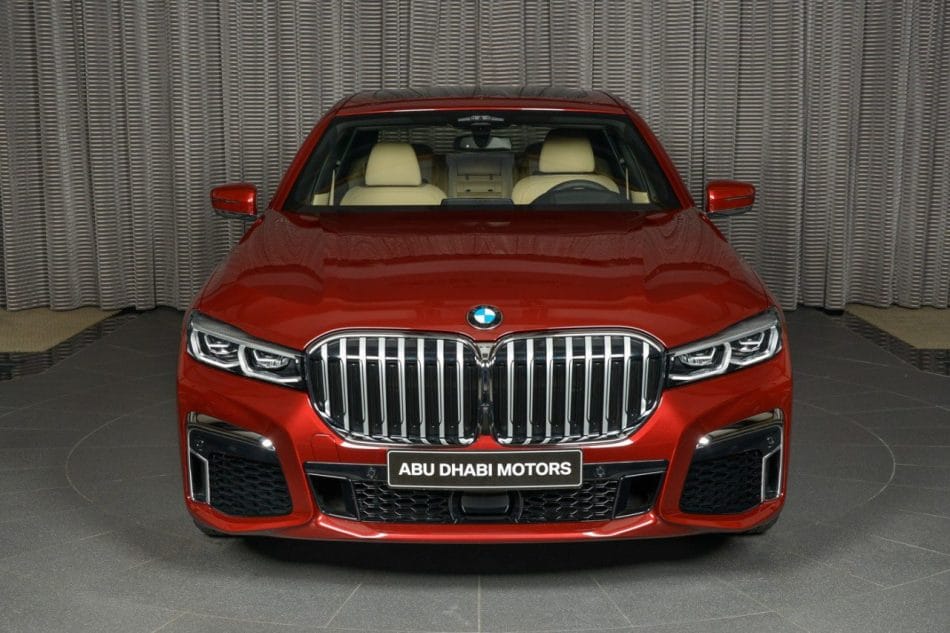 Le concessionnaire Abu Dhabi BMW Showroom a pour habitude de nous présenter quelques belles réalisations lorsqu’ils font appel au département Individual (personnalisation) de BMW. Et en voici un bel exemple sur cette 730 Li qui coche pas mal de cases : peinture « aventurine red II metallic », sellerie cuir biton, placages de bois sur la planche de bord, inserts un peu partout dans l’habitacle, jantes spéciales, boucliers sport et autres éléments font de cette Série 7 « longue » un modèle unique.