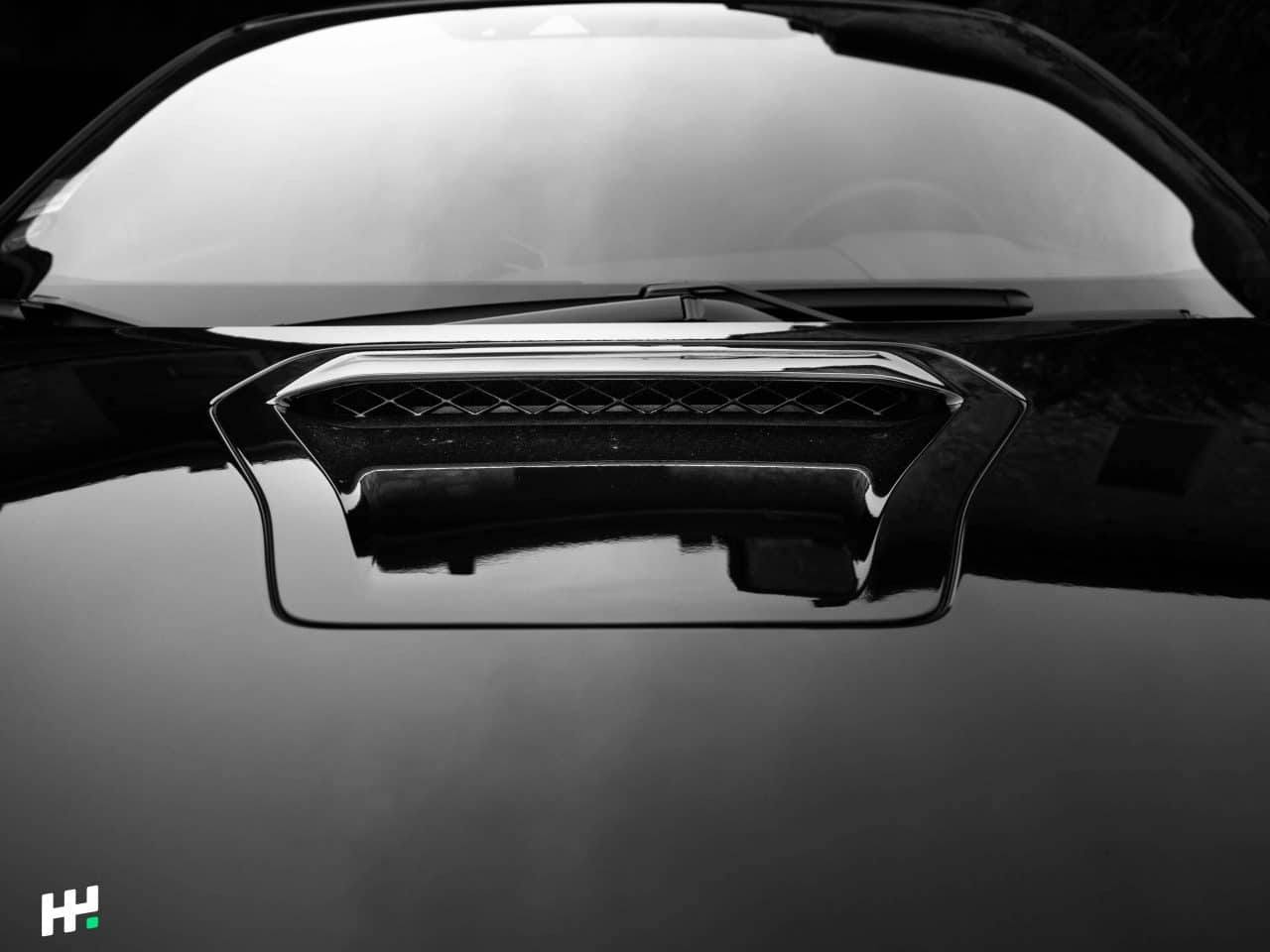 La dotation de série est particulièrement généreuse. Elle comprend la climatisation automatique bizone, l’écran multimédia tactile, la navigation, l’instrumentation numérique (paramétrable), les pleins phares automatiques ou encore le système audio à douze enceintes qui paraît presque un peu superflu dans une voiture aussi radicale, et à l’insonorisation phonique très légère !