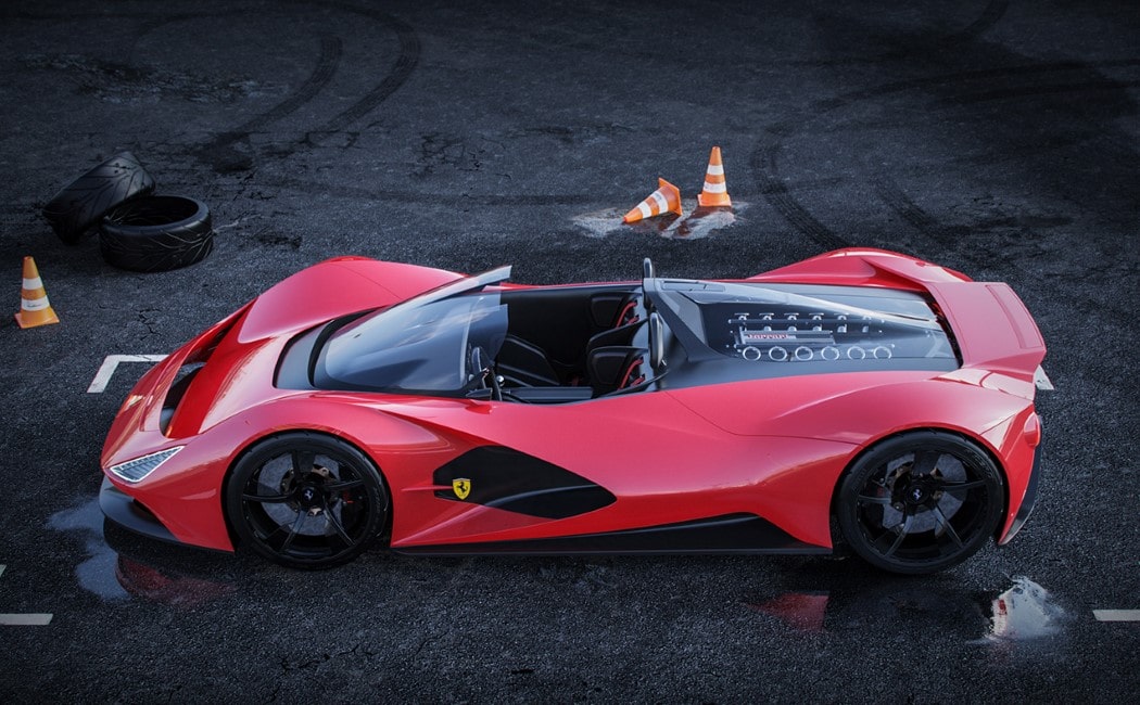 Un designer indépendant répondant au nom de Daniel Soriano a créé cette jolie Ferrari Aliante Barchetta. Malheureusement, il ne s’agit que d’une auto virtuelle… avec un V12 à l’arrière, quand même.
