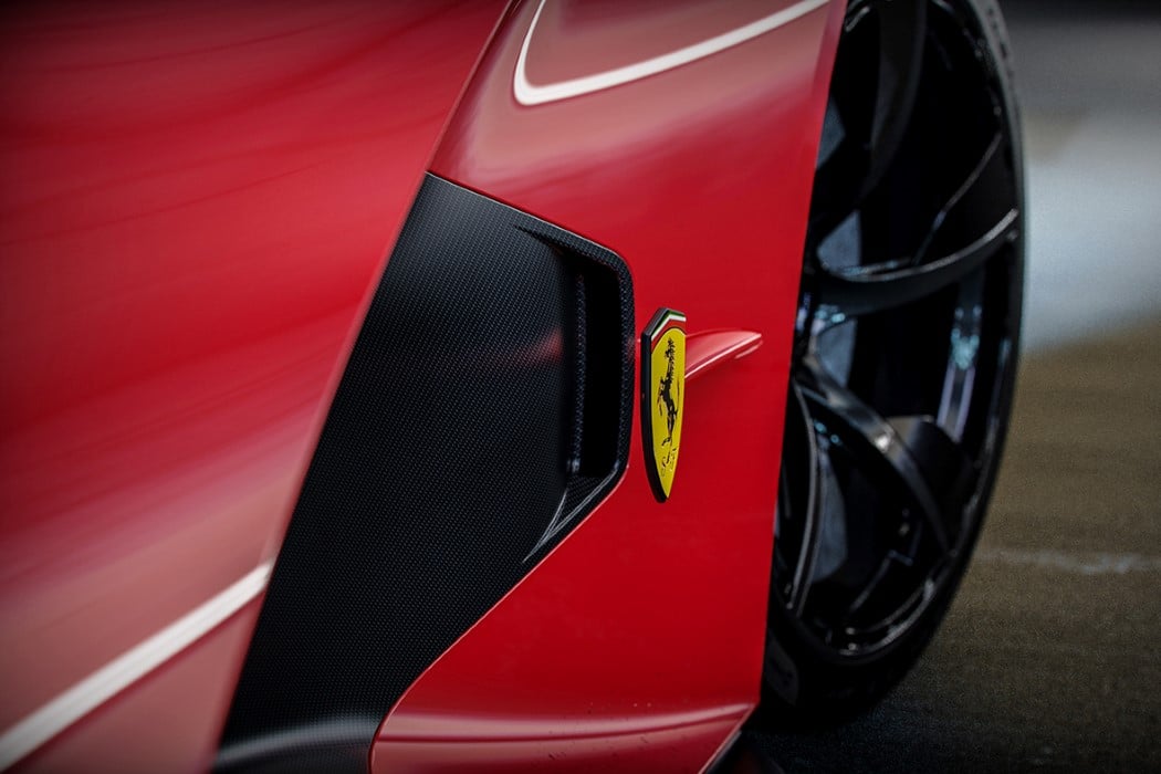 Il s’agit d’un V12 sans aucune hybridation, et à la différence des Monza, cette Aliante a droit à une boîte manuelle à grille en H. Un douze cylindres atmosphérique derrière les sièges, et une boîte manuelle, voilà une combinaison que l’on n’avait pas vue chez Ferrari depuis des lustres. Depuis, en fait, l’époque des 512.