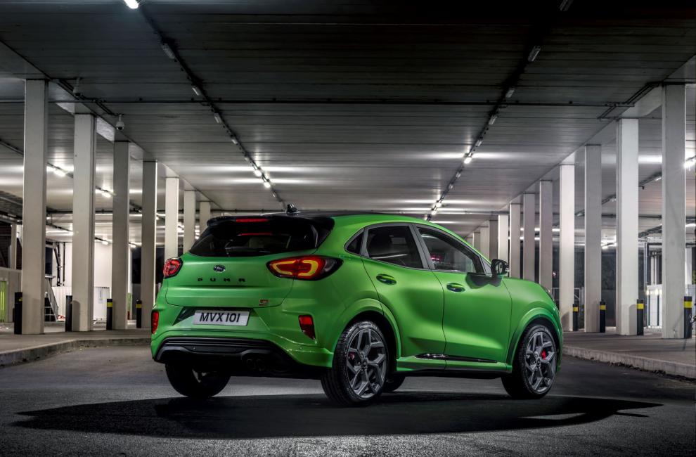 Bien que le Puma ST-Line offre déjà quelques atouts de sportivité, cette version ST ajoute quelques pièces Ford Performance non-négligeables, afin de se différencier de sa sœur-jumelle. On remarque ainsi de nouvelles calandres avec des prises d’air supplémentaires, un becquet arrière, un double sortie d’échappement, des logos « ST » partout à l’extérieur ainsi qu’à l’intérieur (tapis de sol, seuils de portes, pommeau de levier de vitesse, volant spécifique, ou encore des sièges Sport Recaro rembourrés et chauffants.