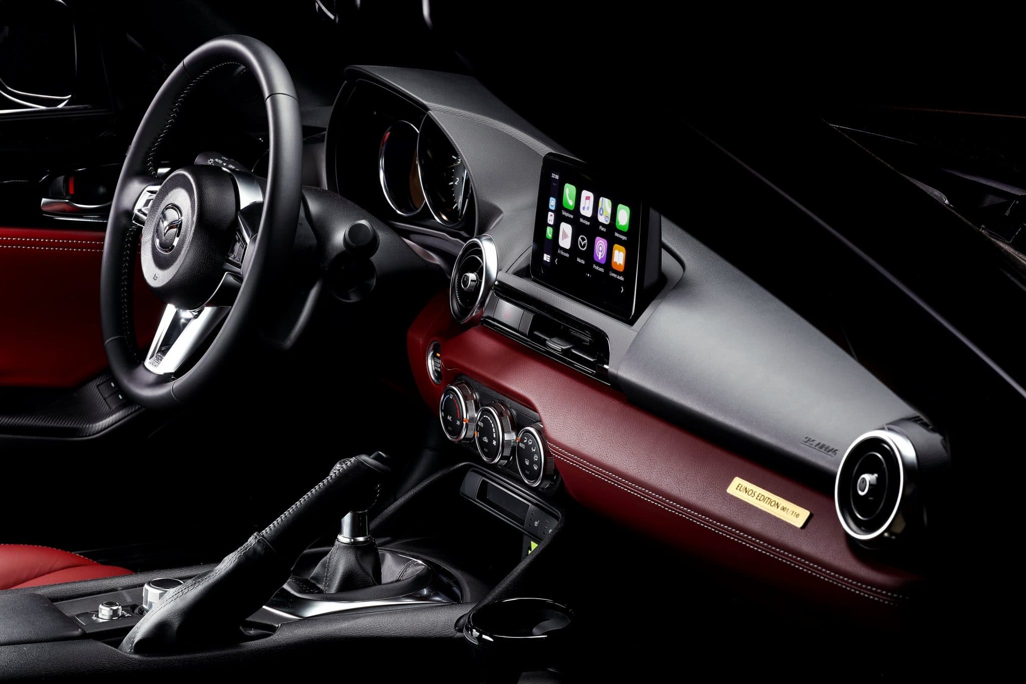 Mazda nous présente aujourd’hui la réinteprétation moderne de cette S-Edition sur la base de la MX-5 ND. La recette est la même : teinte « Jet Black », et habitacle recouvert de cuir Nappa « Burgundy » tranchant bien avec le sombre le plus total de la carrosserie. Les jantes Rays (marque bien connu des afficionados de la personnalisation) sont quant à elles forgées. Ce sont les seules modifications, auxquelles il faut ajouter la plaque numérotée et la clé spéciale.
