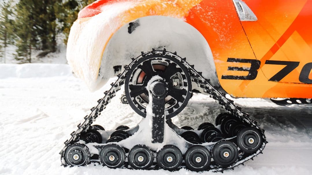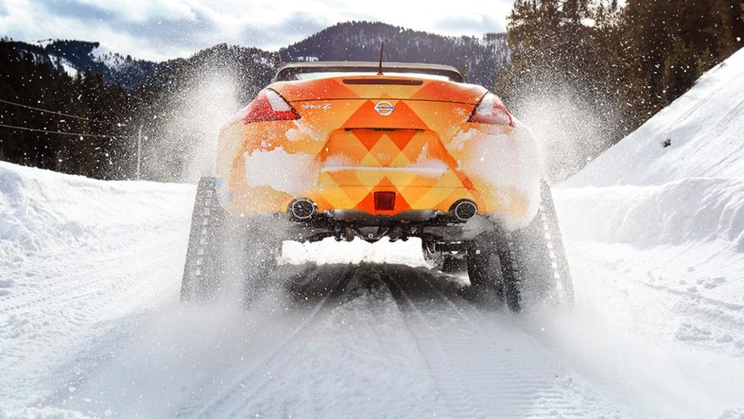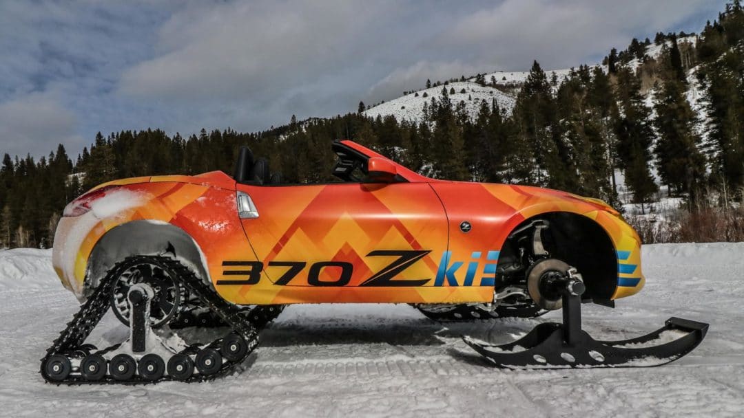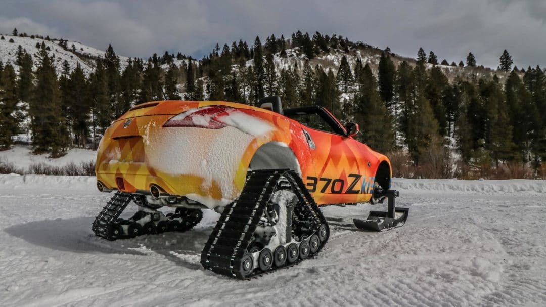 Après le Juke Nismo RSnow, voici la Nissan 370Zki : le roadster nippon qui troque ses quatre jantes contre des chenilles mécaniques.