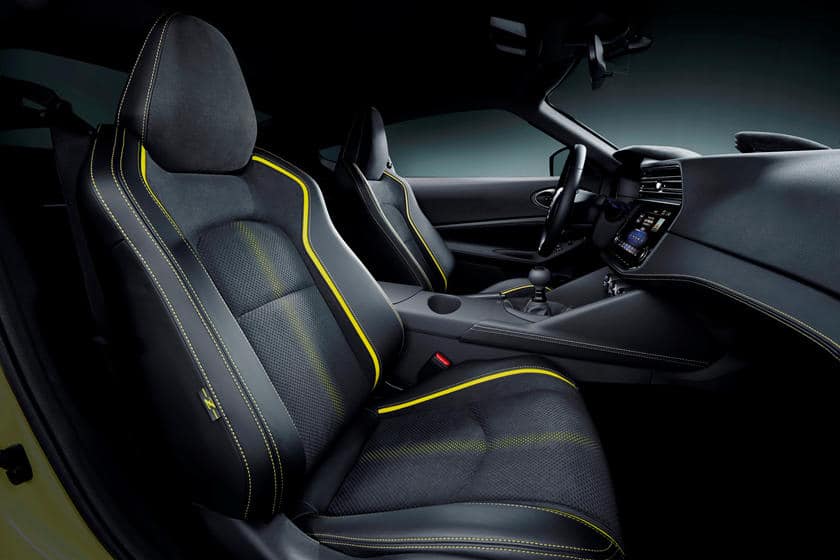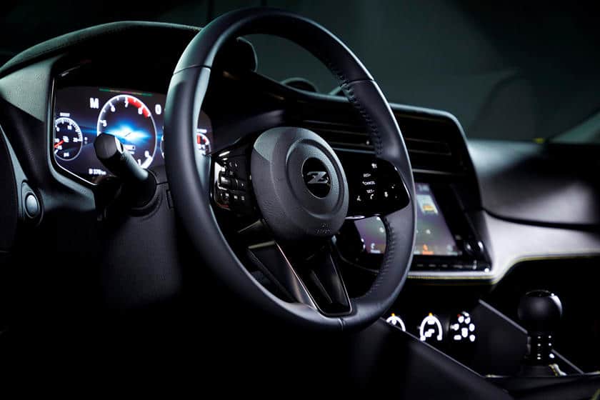 Nissan a opté pour un combo qu’on ne voit plus du tout sur toutes les sportives modernes/récentes. Preuve que la firme japonaise ne souhaite pas abandonner sa clientèle de « puristes ». On vous confirme ainsi la présence d’un levier pour le frein à main et une boîte de vitesses mécanique ! Contrairement aux BMW Z4 et Toyota Supra, déjà présentes sur son segment, le Z Proto permettra toujours de goûter aux joies du talon-pointe.