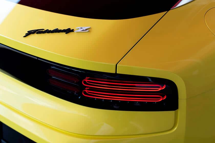 Le Z Proto, qui n’aime pas être appelé « 400Z », est un mélange de plusieurs générations. A plusieurs endroits, de multiples références forment des clins d’œil à ses aïeules. Nous pouvons notamment citer la ligne du capot ou ses phares arrondis qui nous rappellent la 240Z, ses feux arrière inspirés de ceux du 300ZX Z32, ou encore son immense entrée d’air rectangulaire à l’avant qui nous fait penser à la 350Z/370Z.