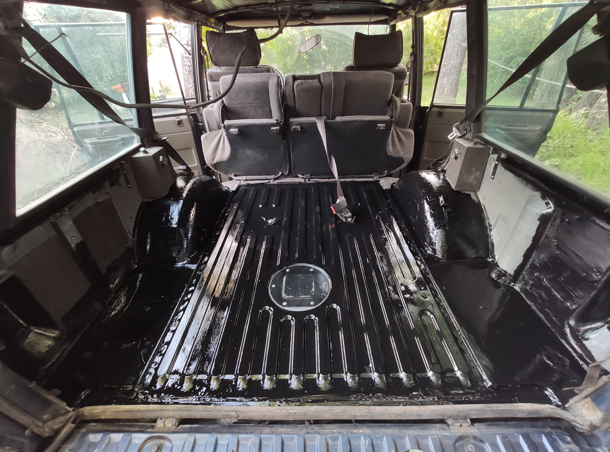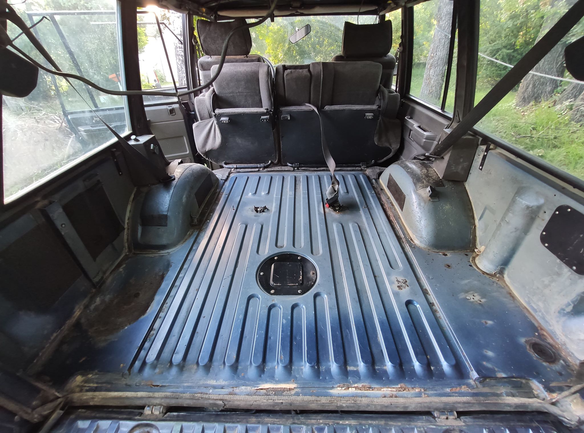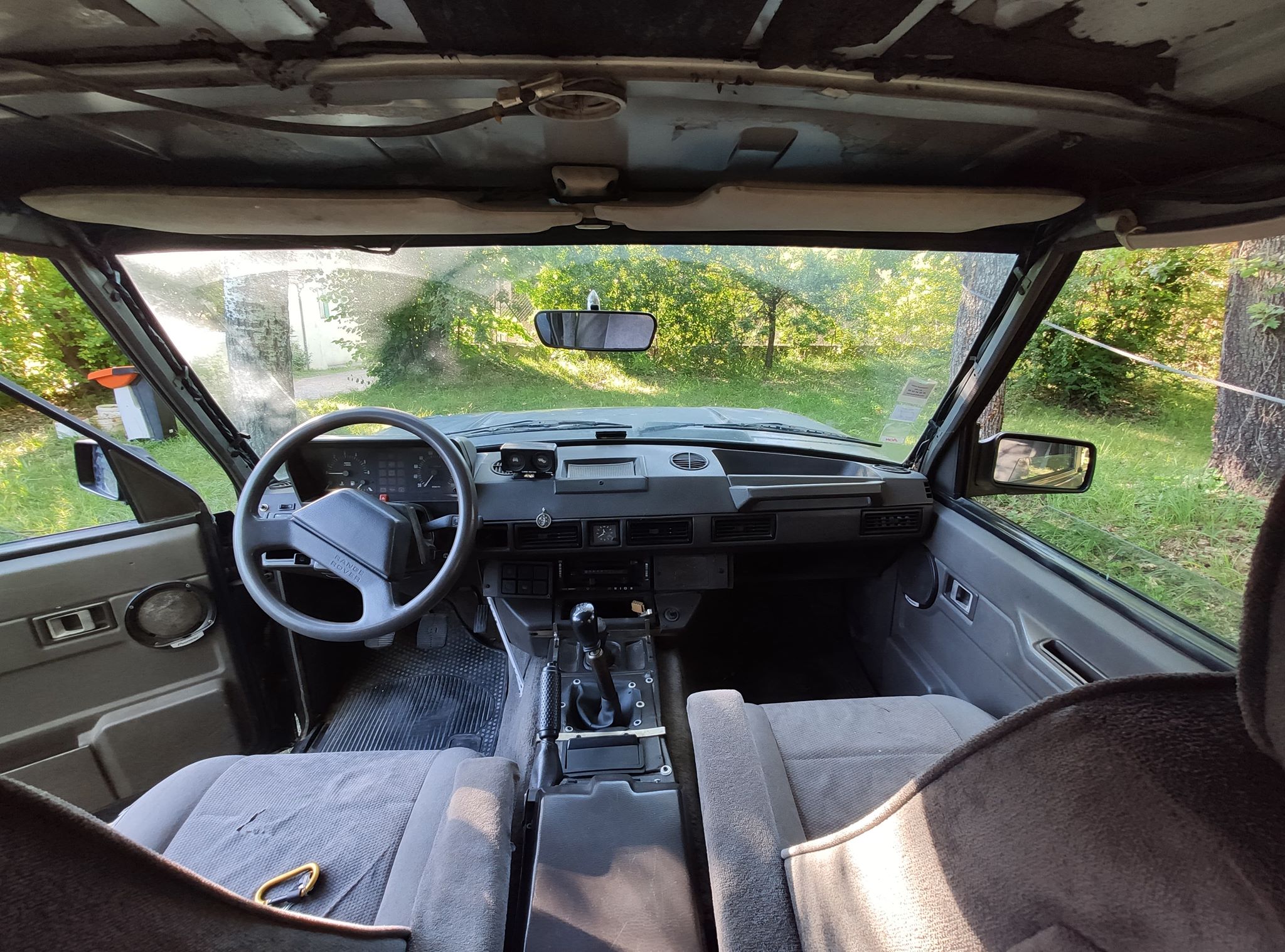 Le quatre cylindres turbodiesel 2.5 d’origine Land Rover (différent du moteur italien VM) développe 113 ch. Ou plutôt « développait » : il affiche fièrement 320 000 km au compteur. Mais il démarre au quart de tour, ne chauffe pas, ne mange pas de fluides et se comporte parfaitement. La transmission est en bon état pour son âge, l’ensemble ne souffrant pas de jeu anormal. La seule crainte ? La courroie de distribution a…. 17 ans. Il va donc falloir lui donner un petit rafraîchissement mécanique global, mais ce n’est pas ça qui demandera le plus de travail sur ce « Range » : la carrosserie, et surtout l’intérieur, vont mériter des heures de boulot. Le but n’est pas de le rendre à l’état concours, mais simplement d’en faire quelque chose de propre, et de parfaitement fiabilisé.