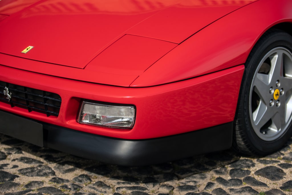 Niveau look, elle est le fruit du coup de crayon de Pininfarina. Le designer mêle tradition et homogénéité. Il va même s’inspirer de la Testarossa, en témoignent ses flancs percés et dotés de longues stries latérales, ou encore ses phares arrière couverts d’une grille. Très aérodynamique, elle affiche un Cx de 0,32. L’intérieur fait honneur à la réputation Ferrari. On remarque la présence généreuse de nombreux matériaux de grande qualité, et d’une superbe grille en alu (boîte de vitesses). L’habitabilité est supérieure à celle de la 328, et ses sièges offre un bon maintien. Petit bémol sur la position de conduite qui pourrait être meilleure.